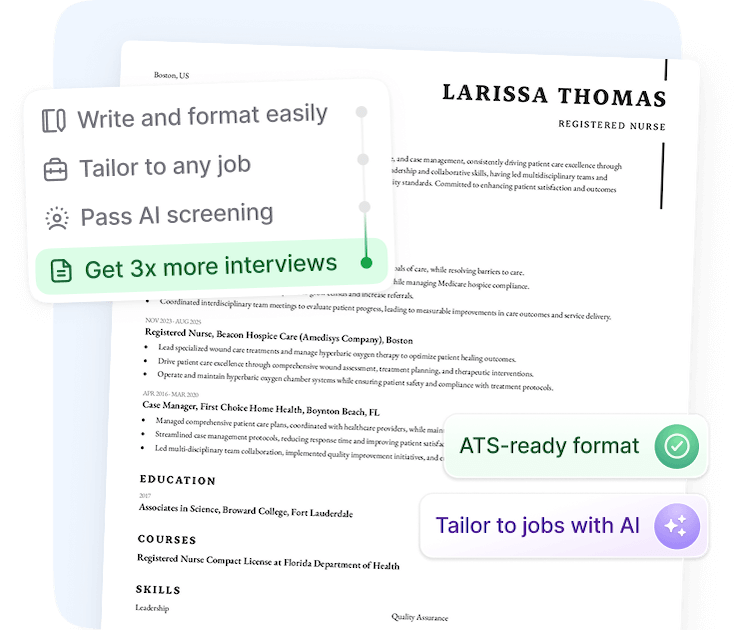 Each of our 200+ AI-powered CV templates follows strict industry guidelines and best practices.